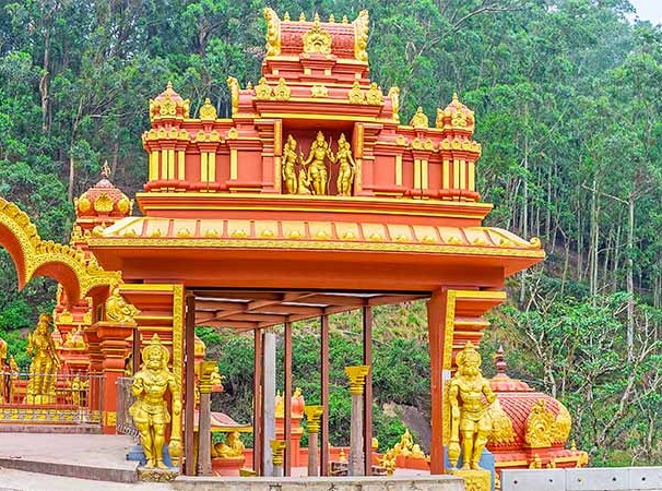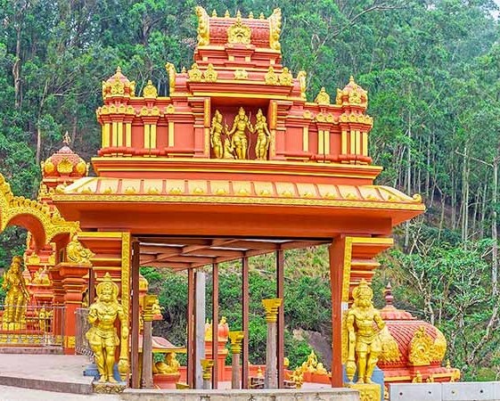 After breakfast, you will be transferred to Nuwara Eliya. En route, visit Bhakta Hanuman Temple, Ramboda Falls, Tea factory & tea plantation. On arrival in Nuwara Eliya, you will visit Gayathri Peedam & Seetha Amman Temple. Overnight at a hotel in Nuwara Eliya. Bhakta Hanuman Temple - A temple that has been built as a presiding deity with a five meters tall granite statue of Rama's devoted supporter, Hanuman. Hanuman is believed to have started his search for Seeta in the Baroda hills. The Tamil word for Ramboda - Rampadai means "Rama's force". That’s why Ramboda is believed to be the area where Rama collected his troops (Temple is closed between 12:45hrs to 15:35hrs). Visit Ramboda Falls - Ramboda waterfall is not a single waterfall and it has two stairs. The top of the main road of Ramboda place, there is another waterfall. Most of the tourists dismiss the waterfall and they visit the upside waterfall and go away. It is 109 m (358 ft.) high and has been recommended as the 11th highest waterfall in Sri Lanka and 729th highest waterfall in the world. It is formed by Panna Oya which is a tributary of Kothmale Oya. Tea Factory and Tea Plantation - If you are travelling on a working day, you will never miss the scenery of tea pluckers working in the tea fields, like butterflies in their colorful sarees. Tea had been one of the main exports in Sri Lanka for by-gone decades. On your way, you will see acres & acres of greenery, tea plantations all around. Step into a tea factory and experience the glimpse of the Ceylon tea making process and taste a cup of pure Ceylon tea. Gayathri Peedam - The first and most important temple built for Gayathri Amman (Gayatri being an aspect of Saraswati and the Universal Mother) in Sri Lanka. Gayathri Peedam is said to be the place from where King Ravana's son Meghanath propitiated Lord Shiva with penance and worship, before he was granted supernatural powers by the mighty god. Seetha Amman Temple - Sri Seetha Amman temple is a unique temple situated in Nuwara Eliya. This is believed to be the place where Seeta lived most of the time of her captivity according to the historical Legend of Ramayana. It is also unique in a way that it is one of the very few temples dedicated to Seeta. The place also has footmarks of the monkey god Hanuman.